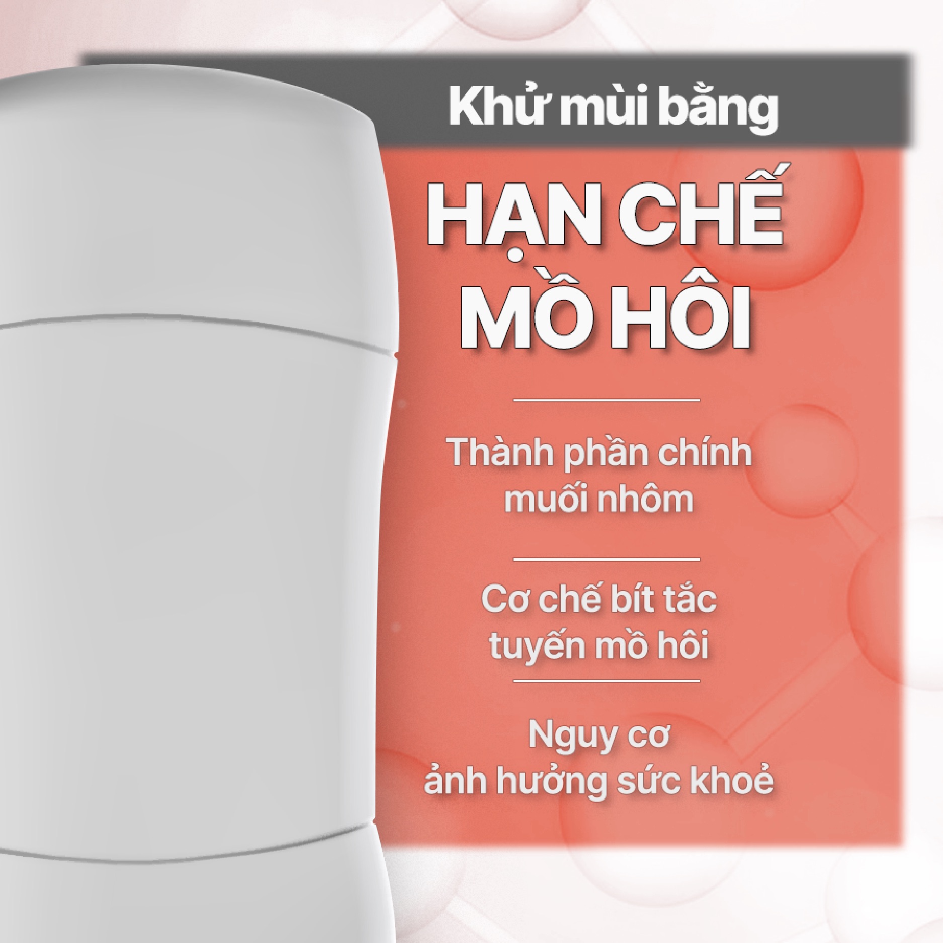 ➤ Nhóm 2 - Triệt tiêu mùi: các sản phẩm này sẽ không dựa và việc gây tắc nghẽn tuyến mồ hôi mà khử mùi bằng các thành phần giúp triệt tiêu mùi và hạn chế sự sinh sôi của vi khuẩn. Nhóm này thường sẽ không chứa muối nhôm vì các nguy cơ ảnh hưởng sức khoẻ của nó.