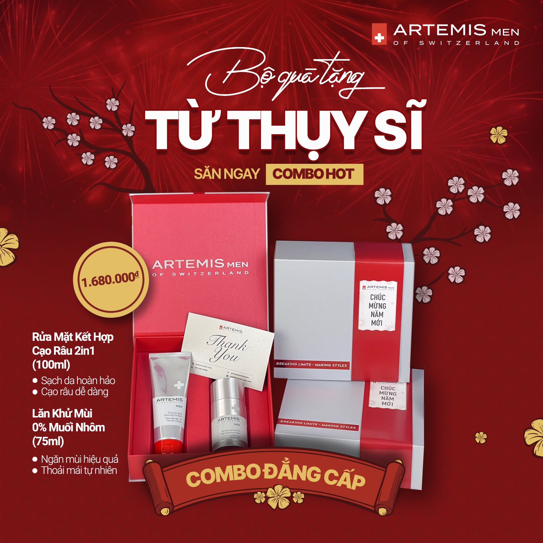 COMBO ĐẲNG CẤP bao gồm: Rửa Mặt Kết Hợp Cạo Râu 2in1 ARTEMIS MEN Cleansing & Shaving Cream và Lăn Khử Mùi 0% Muối Nhôm ARTEMIS MEN Deodorant Roll-On Bộ đôi sản phẩm mà bất kỳ người đàn ông nào cũng phải sở hữu để có được làn da láng mịn cũng như làm chủ mùi hương cơ thể, thoải mái tự tin ở bất kỳ đâu.