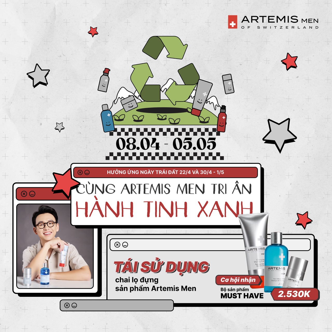 Với mục đích bảo vệ môi trường, khuyến khích sự sáng tạo, mời quý khách hàng cùng tái sử dụng chai/lọ Artemis Men để có cơ hội sở hữu bộ sản phẩm MUST HAVE của Artemis Men trị giá 2.530k bao gồm: