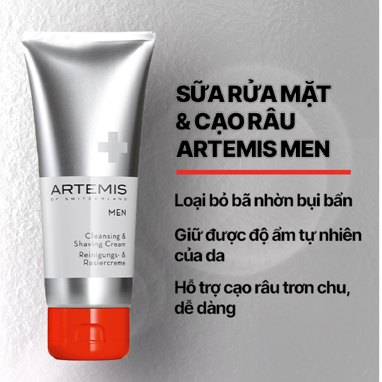Sữa Rửa Mặt & Cạo Râu Artemis Men: vừa mang đến tác dụng làm sạch sâu nhưng lại không làm mất độ ẩm tự nhiên của da đồng thời hỗ trợ việc cạo râu trở nên dễ dàng và hạn chế tổn thương