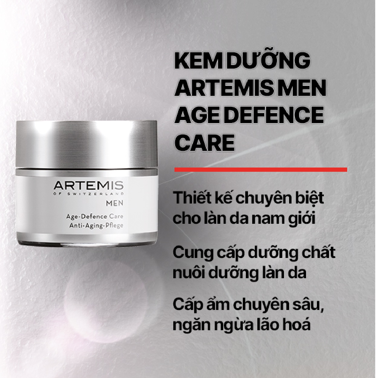 Kem Dưỡng Artemis Men Age Defence Care: Kem dưỡng thiết kế riêng cho nam giới, với khả năng thẩm thấu nhanh chóng, cung cấp độ ẩm chuyên sâu cho làn da nhưng vẫn thoáng nhẹ vô hình. Cùng với các thành phần giúp bảo vệ tế bào, chống oxy hoá nuôi dưỡng làn da tươi trẻ.