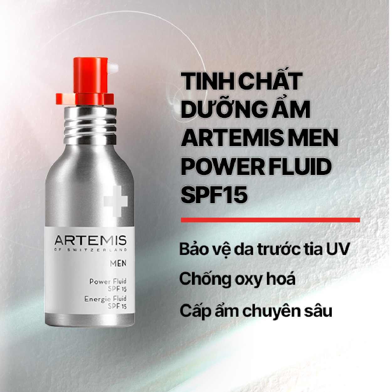 Kem chống nắng: Nên chọn loại kem chống nắng phổ rộng giúp bảo vệ toàn diện khi bạn phải tiếp xúc với ánh nắng. Nếu bạn không phải tiếp xúc trực tiếp với ánh nắng thì có thể chọn các loại kem dưỡng có khả năng chống nắng như: Tinh Chất Dưỡng Ẩm Tăng Cường - Artemis Men Power Fluid SPF15 có khả năng bảo vệ da trước tia UVA và UVB, đồng thời hạn chế các tổn thương do gốc tự do nhờ các thành phần chống oxy hoá trong sản phẩm.